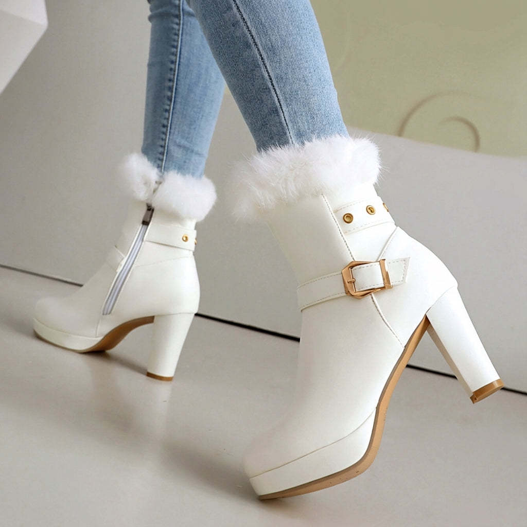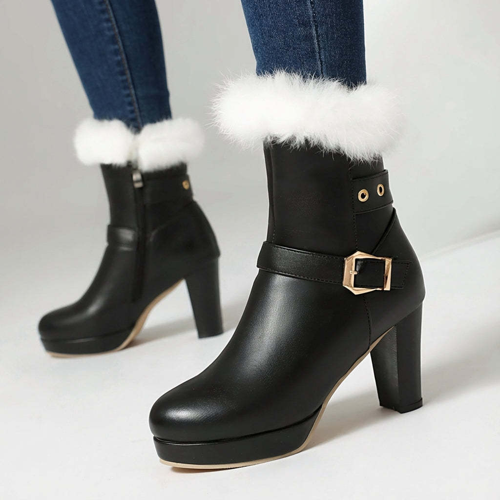 مصنوعة من الجلد الصناعي، تضيف هذه الأحذية القصيرة لمسة ناعمة وأنيقة لملابسك الشتوية.