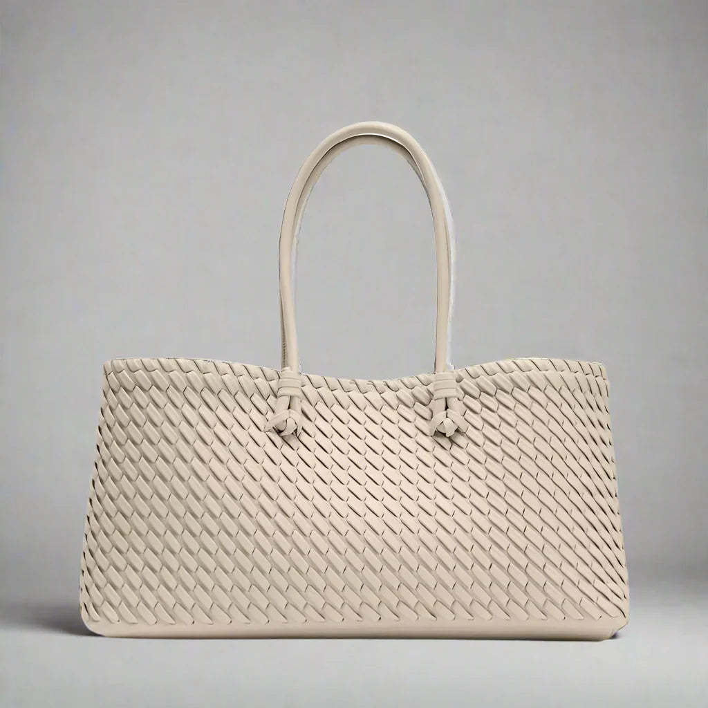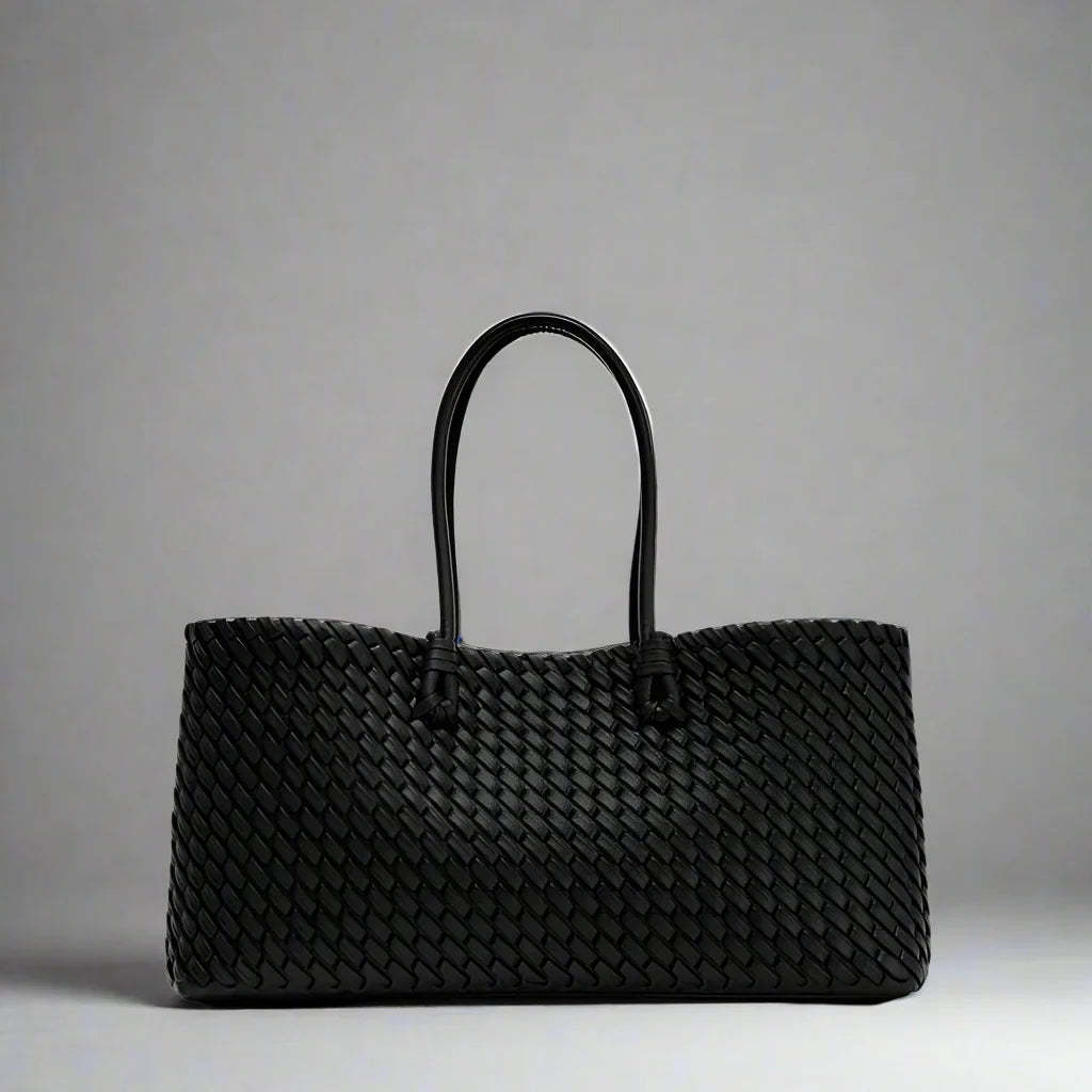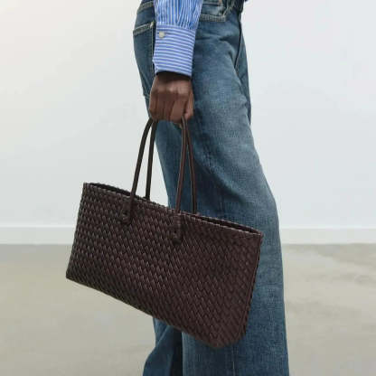 مصنوع يدويًا من جلد عالي الجودة، يتميز هذا الحقيبة بتصميم خارجي منسوج يضيف نسيجًا لمظهرك.